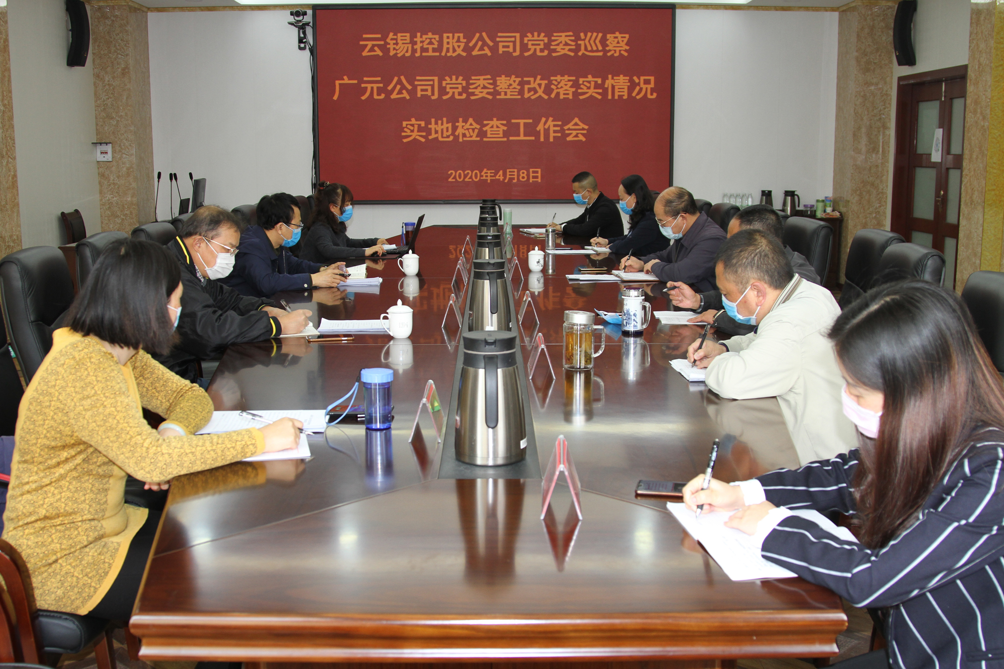 4月8日,控股公司党委巡察办公室到广元公司开展巡察反馈意见整改落实情况的实地检查工作,进一步推动广元公司党委巡察反馈意见整改工作有效落实,为推进云锡生活服务业持续健康发展提供坚强的政治保障。