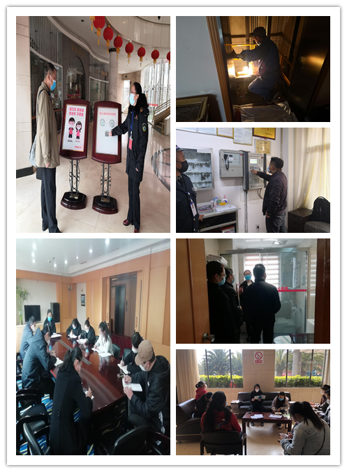 复工复产前,个旧市卫生健康综合监督中心和个旧市文体局联合检查组到宾馆对复工复产相关工作进行了检查和督导。专业公司对电梯、消防施设等进行了一次全面的检测维护,宾馆对内部进行了全区域的一次安全大检查。