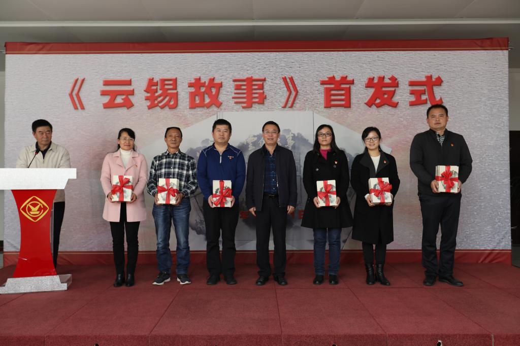 这是控股公司《云锡故事》书籍首发仪式上赠书环节上的一幕。首发仪式上,各基层单位领导、工会主席、宣传部长、团委书记,作者代表,编委会成员等齐聚一堂,共同见证《云锡故事》首发。