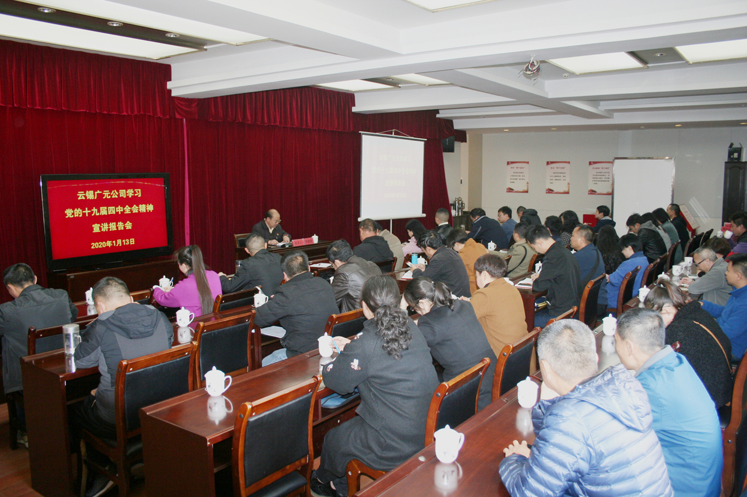 1月13日,广元公司党委启动党的十九届四中全会精神宣讲活动,党委书记、董事长许祖英带头宣讲党的十九届四中全会精神,引导党员干部职工充分认识中国特色社会主义制度的本质特征和优越性,充分认识中国特色社会主义制度和国家治理体系经过长期实践检验,来之不易,必须倍加珍惜,引导广大干部职工把思想和行动统一到全会精神上,把智慧和力量凝聚到云锡生活服务产业2020年改革发展工作上来。