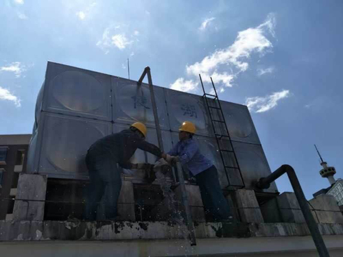 6月3日,南城家园小区生活水箱漏水,小区物管在接到报修后,第一时间组织修理工进行抢修,于当天内正常供水,确保600余户住户日常生活不受影响。