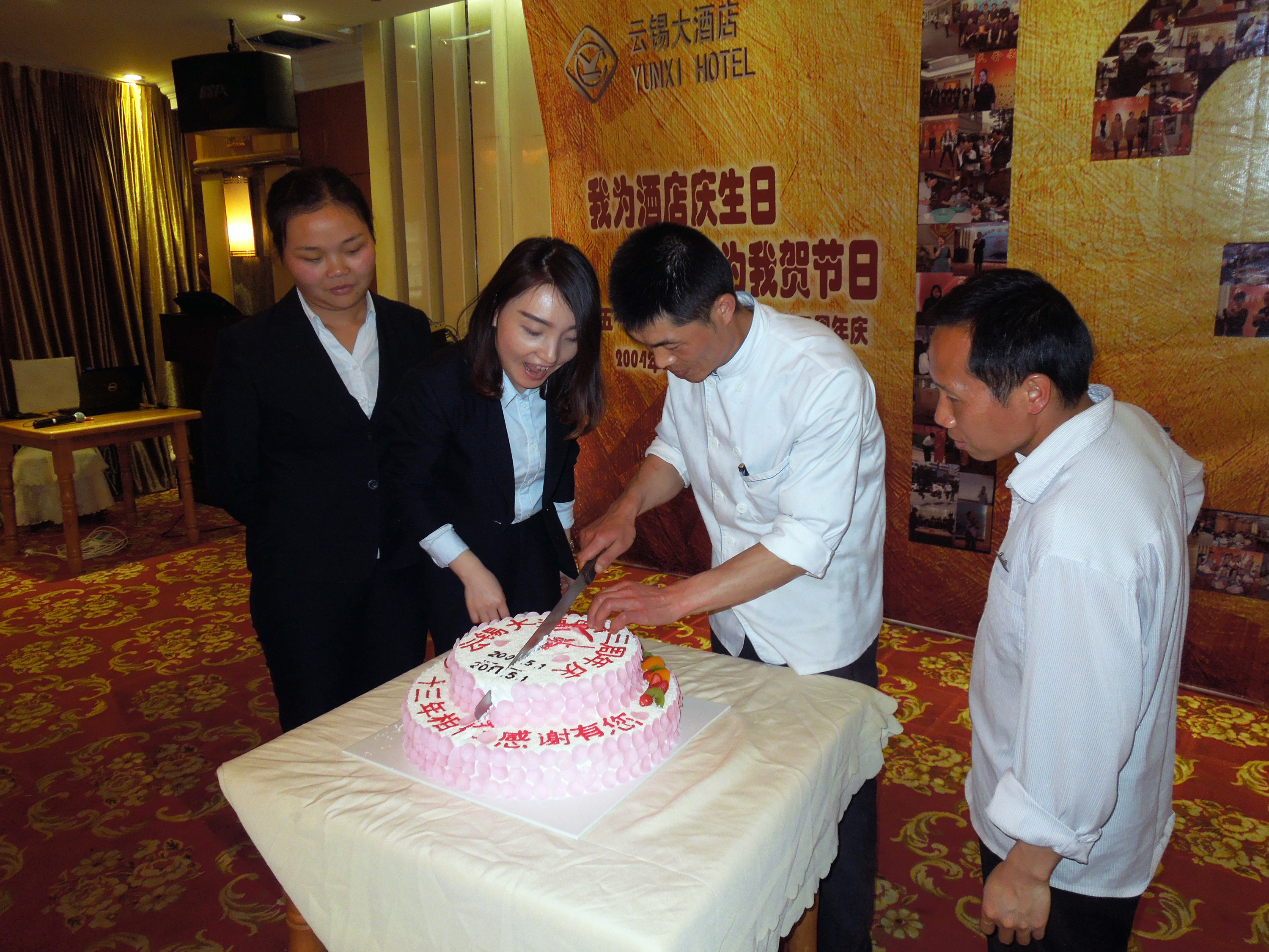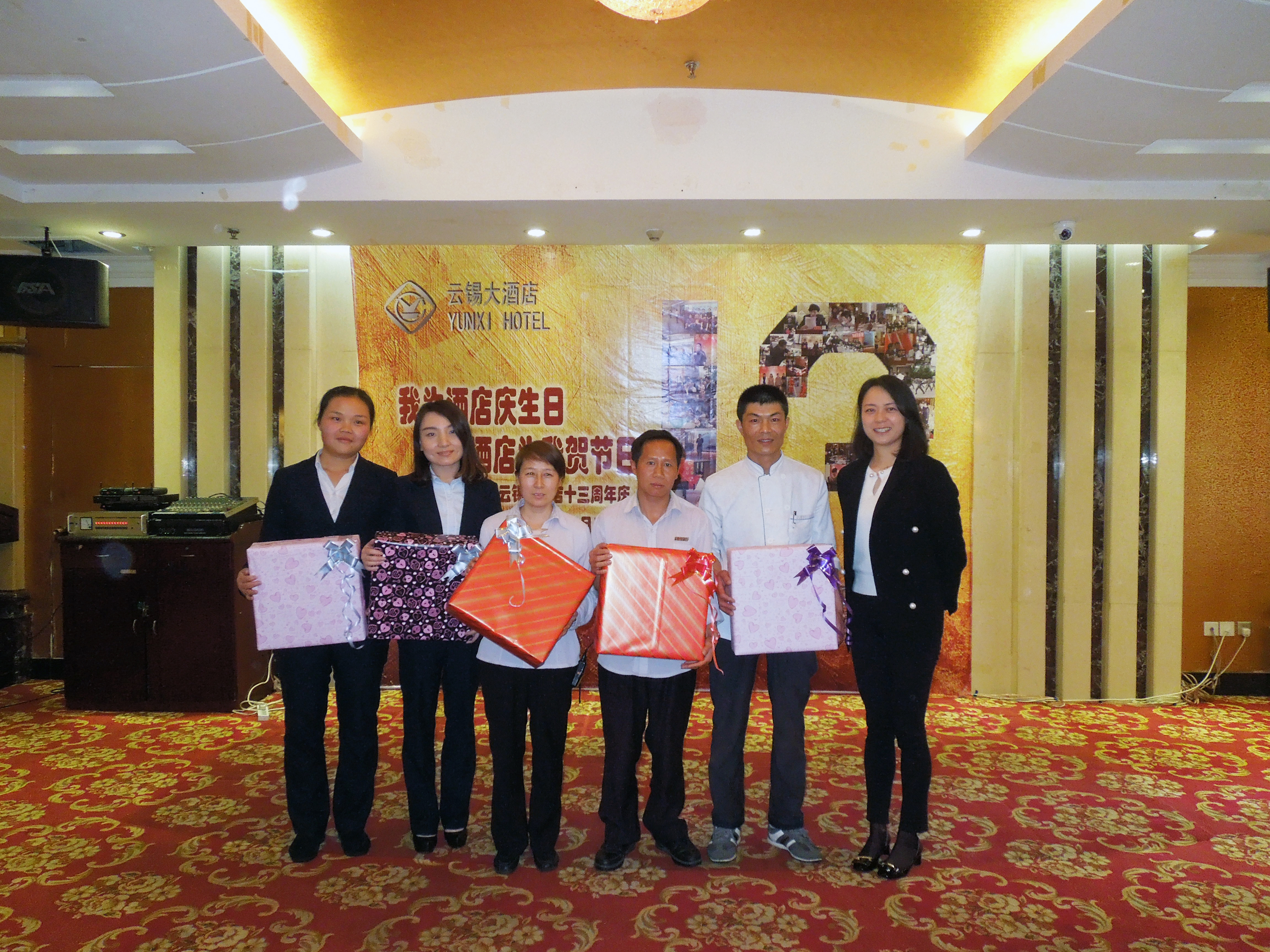 在云锡大酒店十三周年庆暨“五•一”国际劳动节来临之际,为丰富员工文化生活,增进员工之间的交流。4月24日,云锡大酒店召开“我为酒店庆生日 酒店为我贺节日”主题感恩活动。