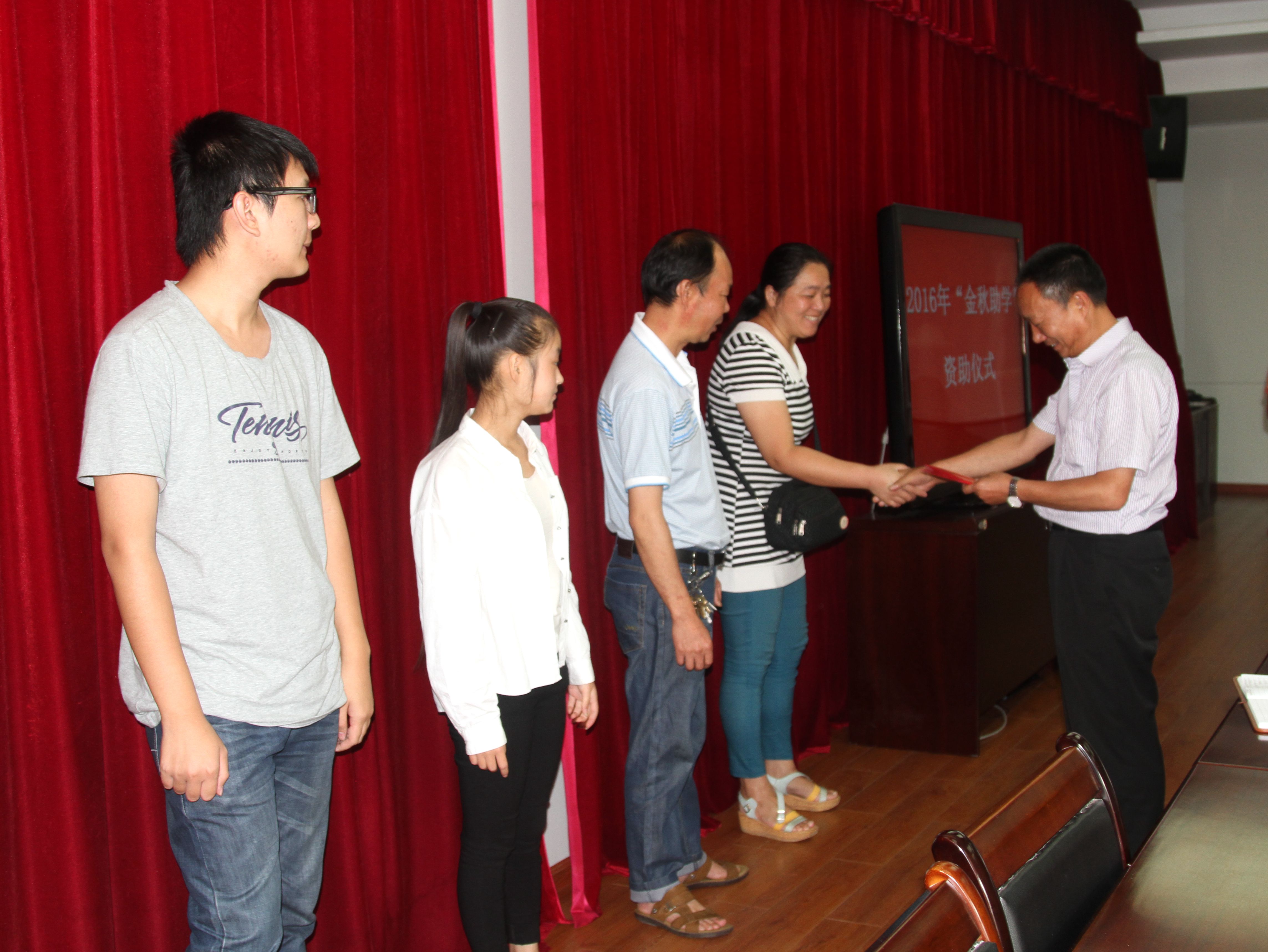 爱心助学,圆梦金秋。8月26日上午,广元公司工会在三楼会议室举行了2016年“金秋助学”资助仪式,向考入高校的4名应届大学生、9名往届大学生以及1名在读高中的困难职工子女分别发放了云南省总工会、控股公司工会、广元公司工会三级工会的助学资助金共计9800元。广元公司党委副书记、工会主席刘国平,党群工作部部长、工会副主席李银珠,党群工作部副部长、女工主任倪微参加会议。