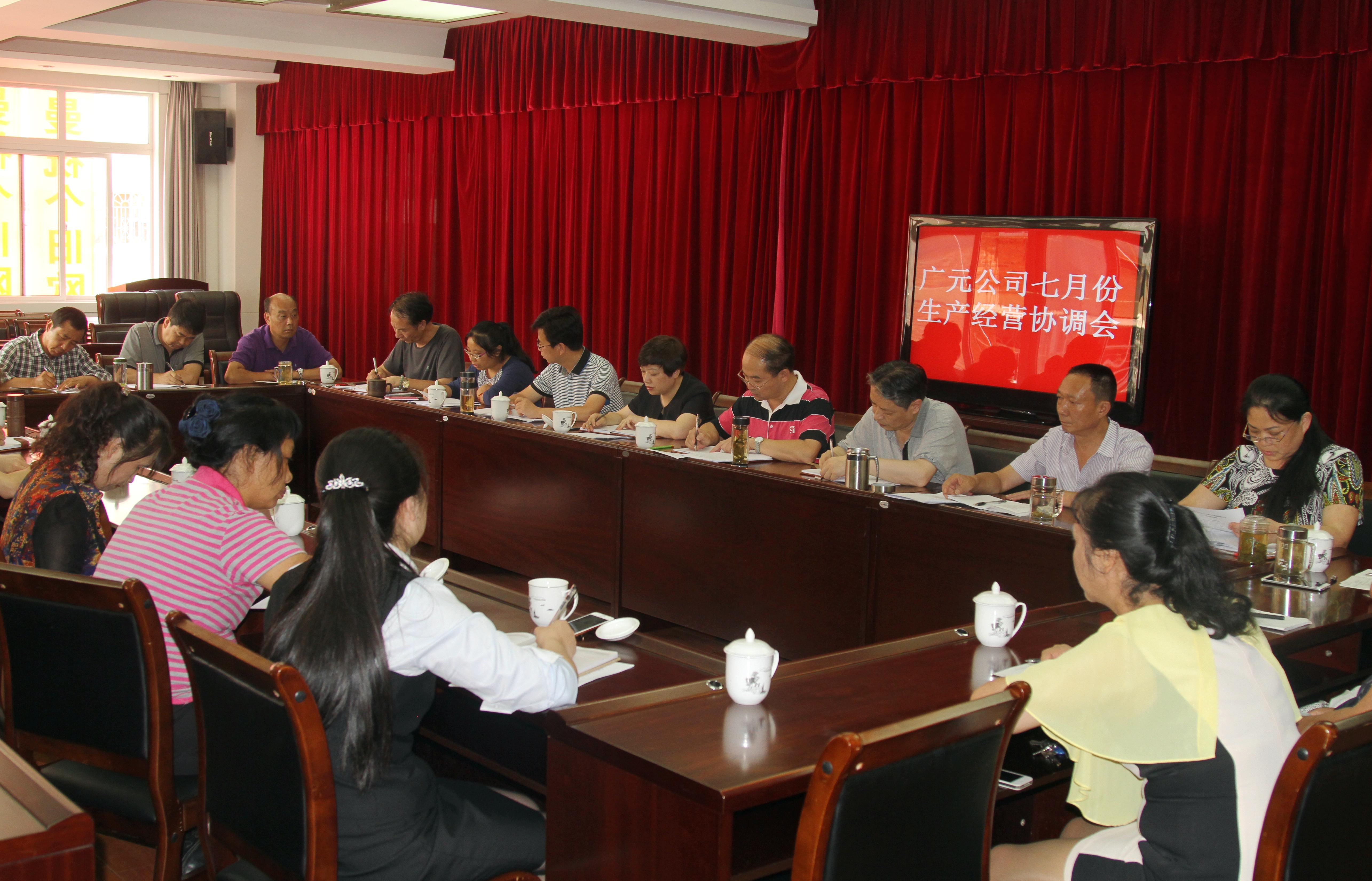 7月11日下午,广元公司召开七月份生产经营协调会。会议通报了公司上半年的生产经营及经济运行情况,深入分析了下半年减亏增盈攻坚战推进工作的任务措施,协调解决基层单位提出的问题,并对下一步重点工作作出安排和部署。会议由公司副总经理吴东云主持。