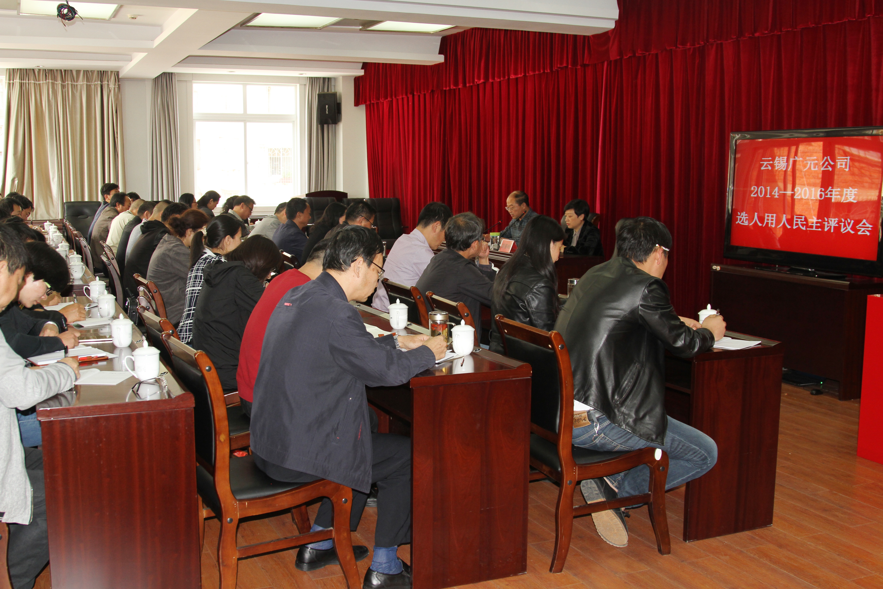 会上,与会人员对云锡广元公司(含原供水公司)2014年—2016年干部选拔任用情况以及选拔任用的干部进行了民主评议。