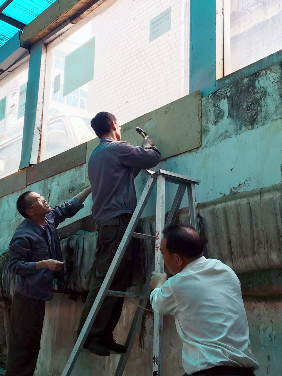 云锡大酒店地下通道屏风(玻璃墙)因年久老化出现板材脱落、渗水等问题,基座不稳,易发生倒塌破碎事故,存在一定的安全隐患。近日,酒店工程部、保安部管理人员针对该情况向专业人士咨询、请教后,找准解决问题关键,并组织人员找来砂石水泥、复合板等材料,在对其板材构筑部分进行加固后又用混凝砂浆填补缝隙做防漏处理,不仅及时消除了安全隐患,还为酒店节约了成本费用。