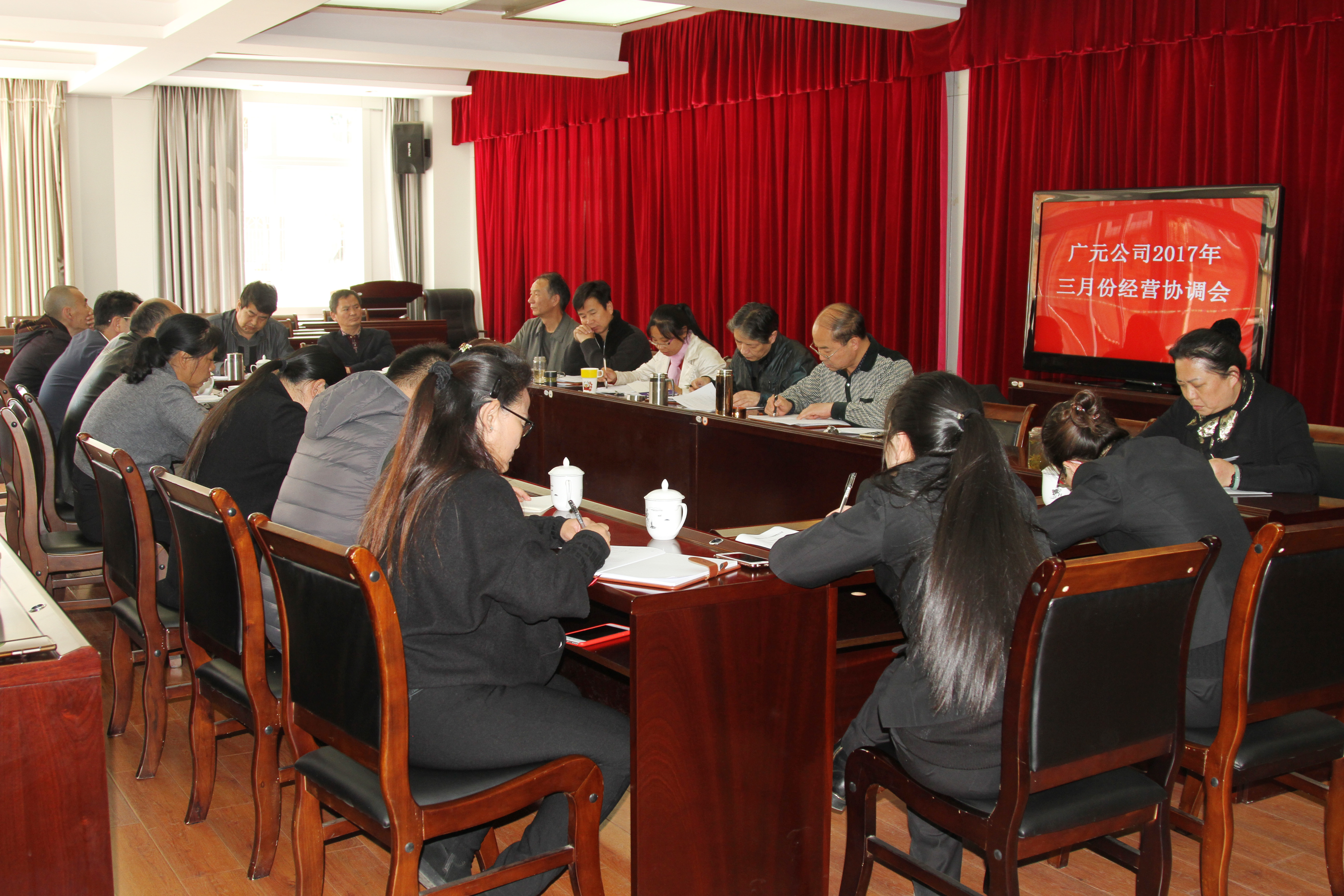 3月13日,广元公司召开三月份生产经营协调会。会议通报了公司当期生产经营情况,提出重点工作的任务措施,协调解决基层单位提出的问题,并对下一步重点工作作出安排部署。会议由公司副总经理吴东云主持。