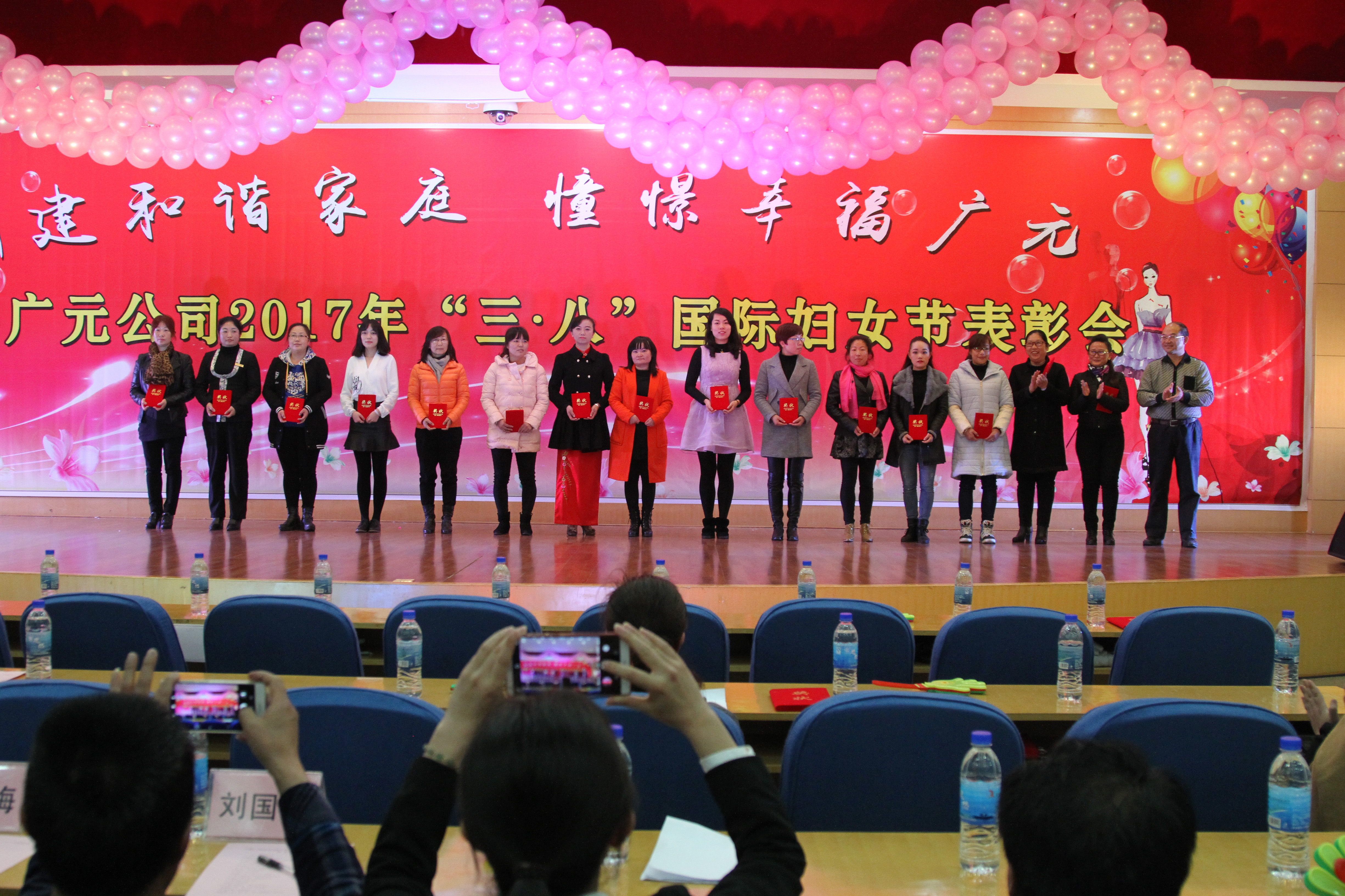 首先,刘国平代表公司党委、公司,向全体女职工致以节日的问候和衷心的感谢,希望女职工们振奋精神,努力学习,努力工作,争做新时代的优秀女性,为实现公司各项工作任务发挥“半边天”作用。表彰会对2016年度涌现出来的“广元巾帼奖”、“先进女职工工作者”、“和谐家庭”进行表彰奖励。