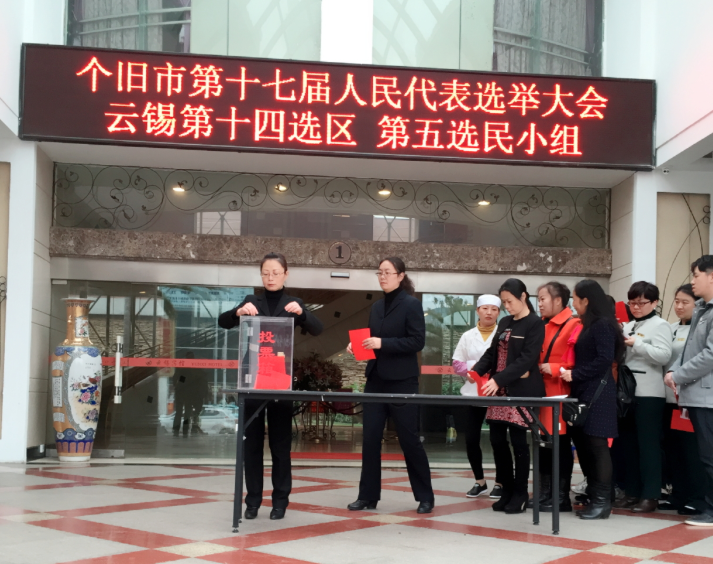 在选举工作期间,广元公司云锡十四选区按照选举工作的程序和各个时间节点做好各阶段工作,通过广泛宣传动员、选民登记、颁发选民证,严把代表候选人提名推荐关,以组织提名推荐、选民联名推荐的方式进行。选举当天,以无记名差额选举的方式,从2名代表候选人中选举产生1名人大代表。各位选民认真行使自己的权利,投下了庄严的一票。