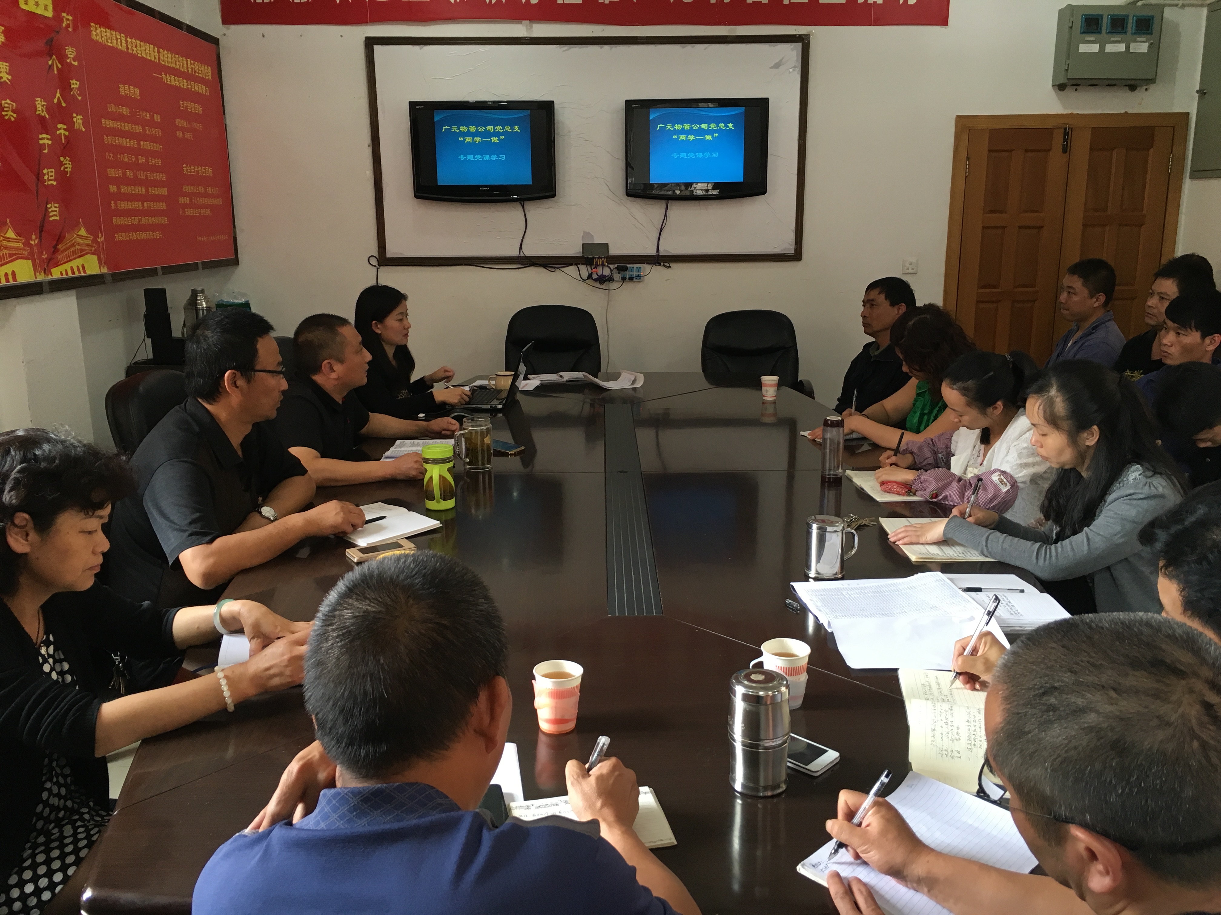 6月17日,广元物管党总支开展“两学一做”专题党课学习活动,党课由党总支书记李银珠主讲,经理廖俊主持。