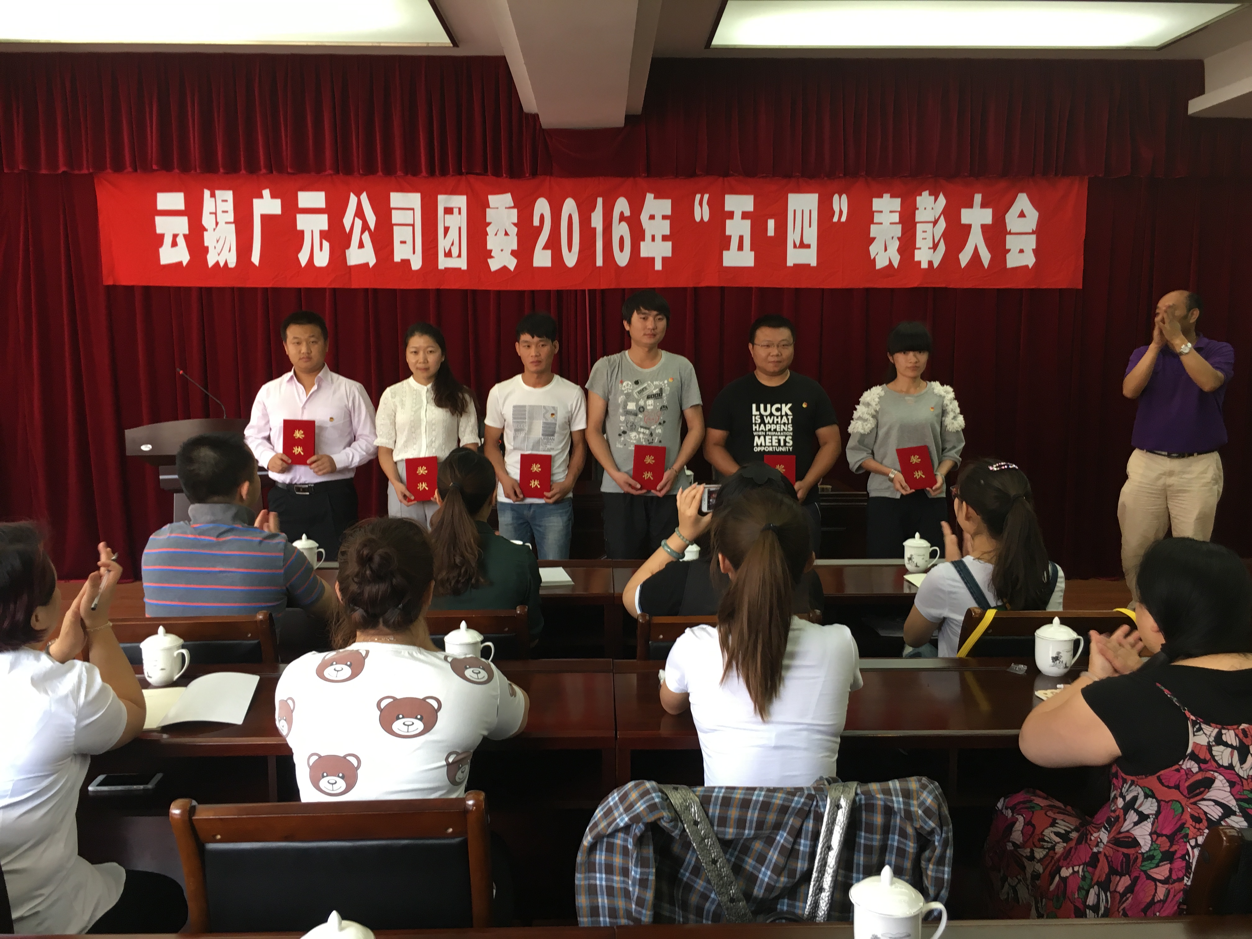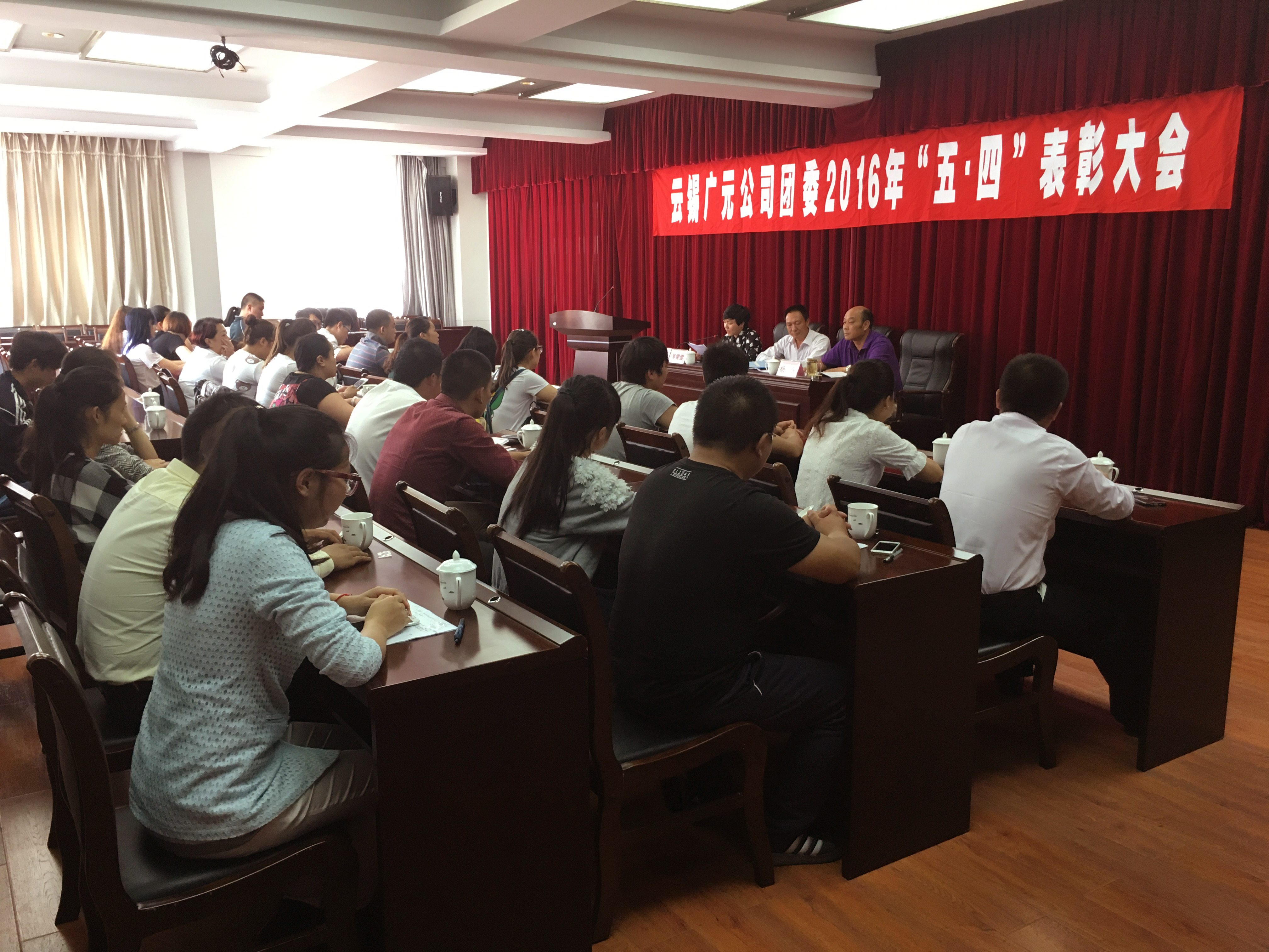 5月30日,广元公司团委在公司三楼会议室召开2016年“五·四”表彰大会。公司党委副书记、工会主席刘国平,党群部部长杨庆出席会议,并为获奖集体和个人颁奖。公司团委书记吴雯雯主持会议。