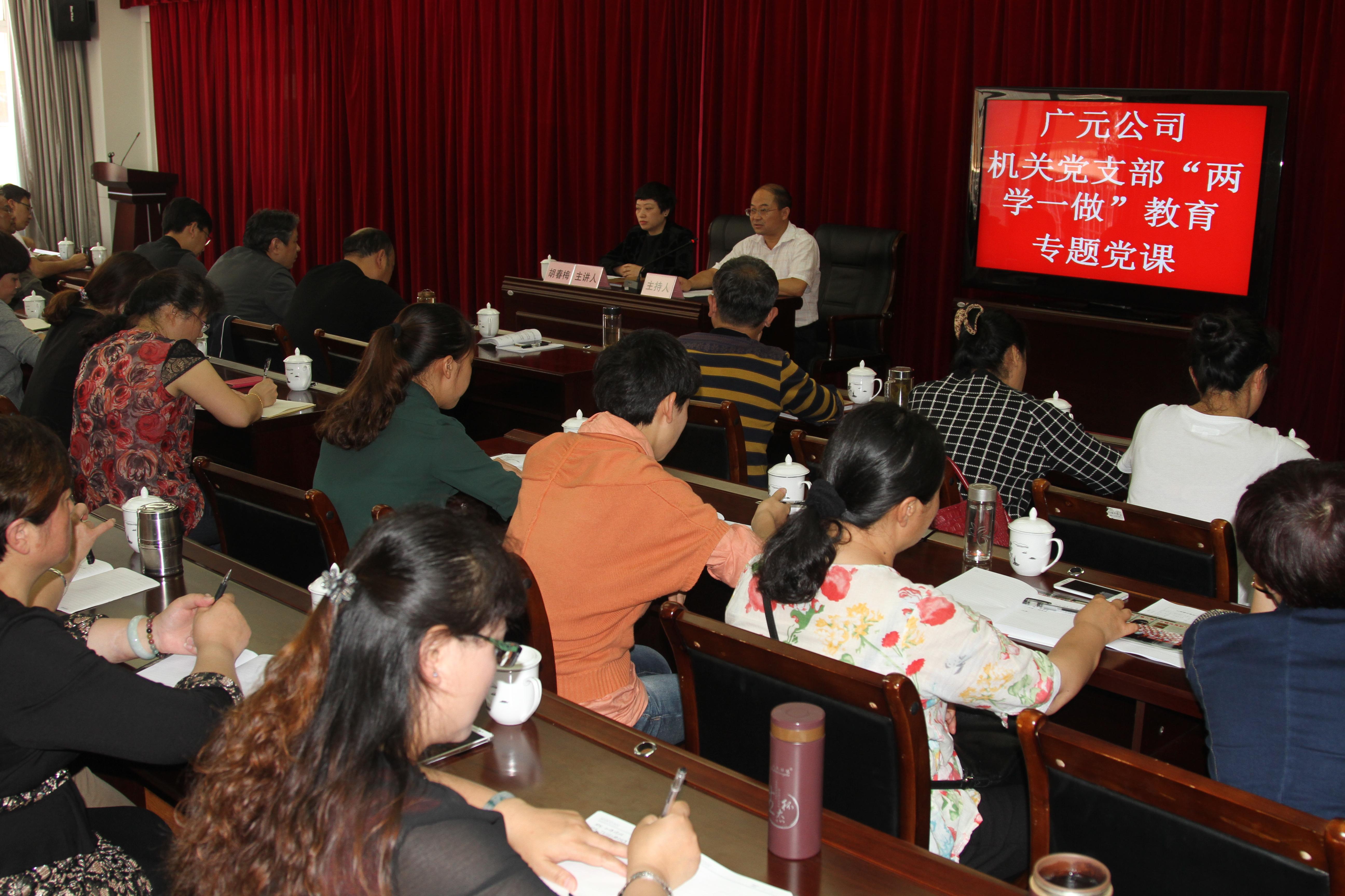 5月27日,广元公司机关党支部组织开展了“两学一做”专题党课教育学习活动,党课由公司党委书记、董事长胡春梅主讲,总经理许祖英主持。