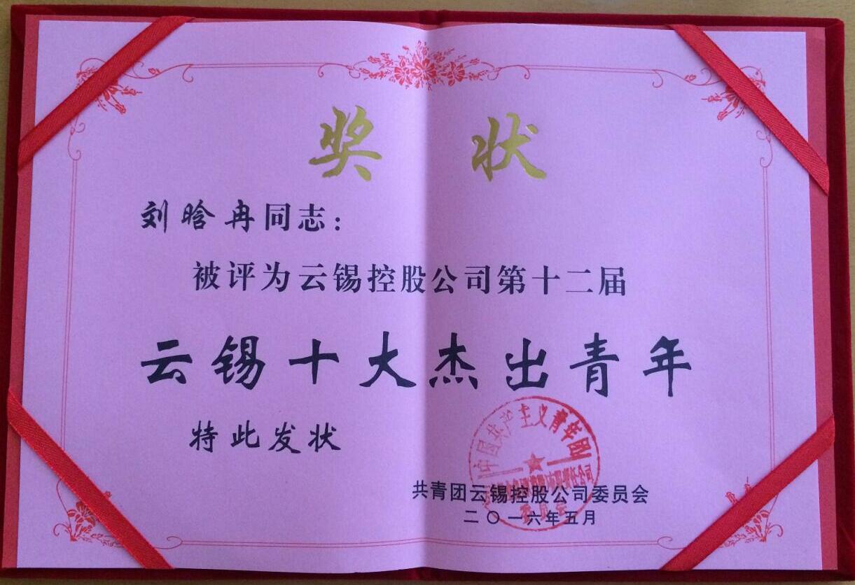表彰会上,广元公司团委荣获控股公司“五四红旗团委”荣誉称号;云房物管团支部荣获“五四红旗团支部”荣誉称号;机电安装部刘晗冉荣获第十二届云锡“十大杰出青年”荣誉称号。