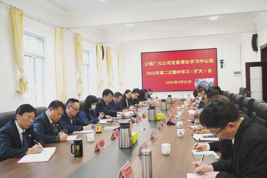 3月25日,广元公司党委举行理论学习中心组2022年第二次集中学习(扩大)会,认真学习领会习近平总书记在全国两会上的重要讲话和全国两会精神,深入贯彻省委省政府印发《云南省推进作风革命加强机关效能建设的若干规定(试行)》精神,以自我革命精神推进作风革命、效能革命,全力推动辅业退出、市场化改革工作落实落地。党委书记、董事长王金主持学习会并作总结讲话。