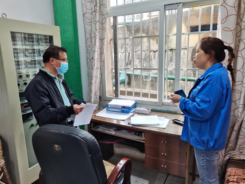 了解三分公司倘甸净化站及沙甸办公室安全生产、台账记录、疫情防控等方面的情况,倾听一线职工的心声,为一线职工答疑解惑,并提醒下雨天要注意水质变化,上下班做好个人防护。