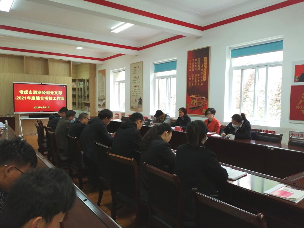 4月21日,广元公司纪委书记张跃琼率第四考核组在总部105会议室开展老虎山酒业公司2021年度综合考核评价及民主测评工作。(钱娇)