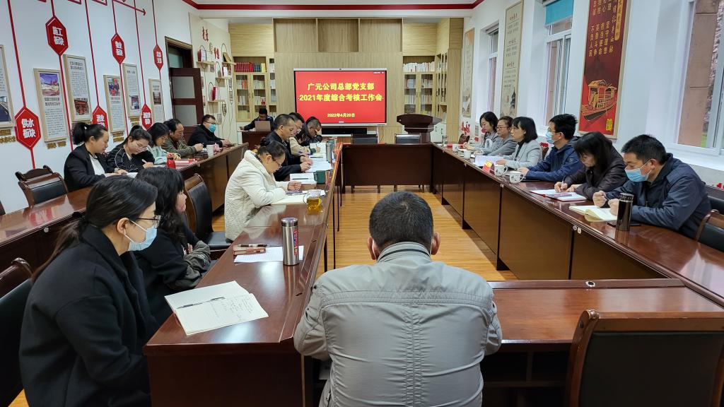 4月20日,广元公司党委副书记、工会主席陈娥率第三考核组到广元总部开展2021年度综合考核评价及民主测评工作。(张磊)