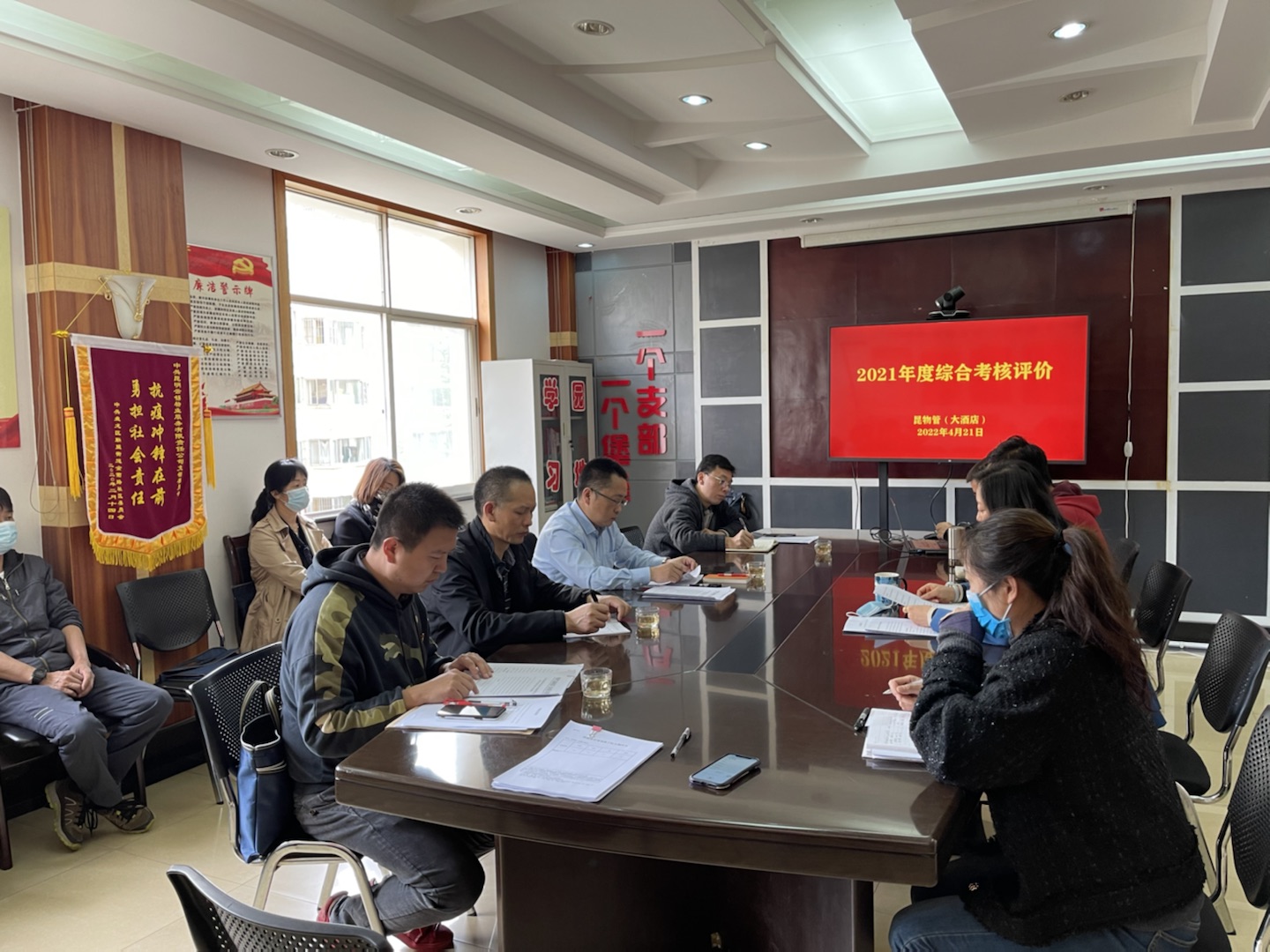 4月21日,广元公司副经理林伟率第六考核组到昆物管(大酒店)公司开展2021年度综合考核评价和民主测评。(陈洁、沈健)