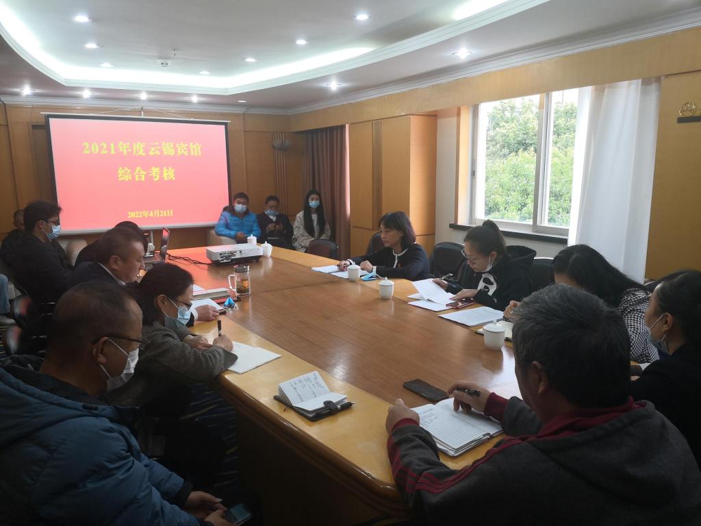 4月21日,广元公司党委副书记、工会主席陈娥率第三考核组到云锡宾馆开展2021年度综合考核评价及民主测评工作。(飞媛媛)