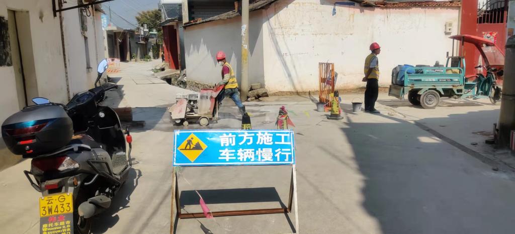 在红河大道供水管道改装现场,工人对开挖的土方进行仔细遮盖防尘。由于操作空间受限,要对原管道先拆除、再开挖、再焊接、再埋深,施工难度比新装更费力。工人们结合现场地势,一段一段改、小节小节焊、一米一米往前辗。