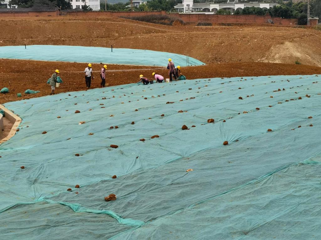 在东方红农场历史遗留废渣堆场原位风险管控工程现场,工人们相互配合,对播撒完草籽的地块铺盖无纺布;钻打监测井的工人们忙着立井架、接电源,为钻打最后一口监测井做着准备,争取两天内完成打井工作,为确保工程验收做最后的冲刺。