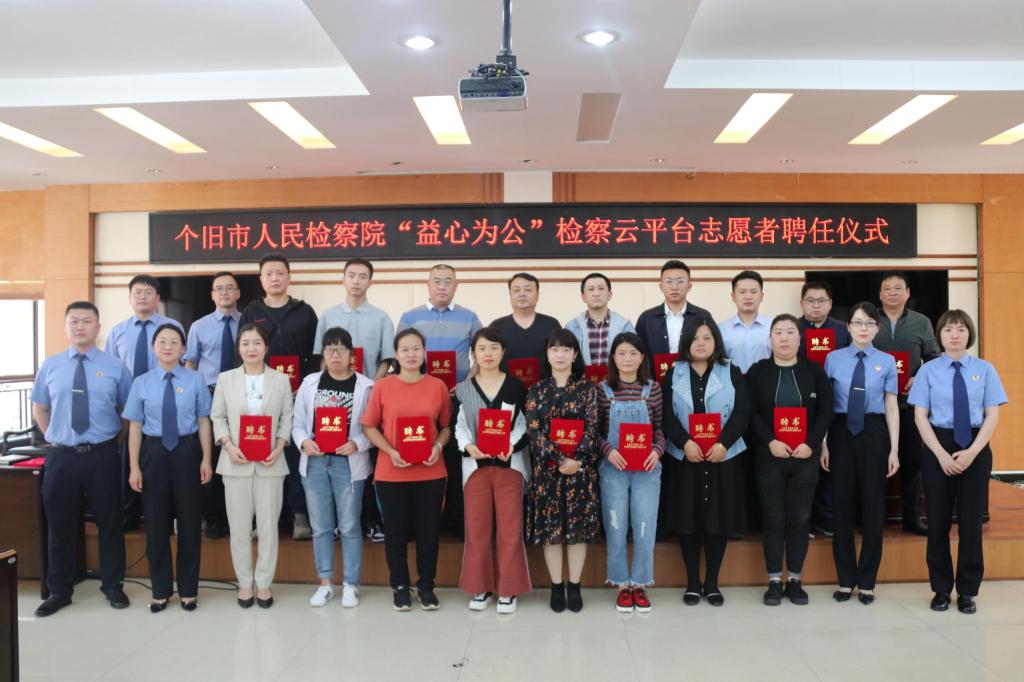 近日,个旧市人民检察院举行“益心为公”检察云平台公益保护志愿者聘任仪式,为20名公益保护志愿者和19名公益保护观察员颁发了聘书,云锡3名职工被选聘为公益保护志愿者和观察员。