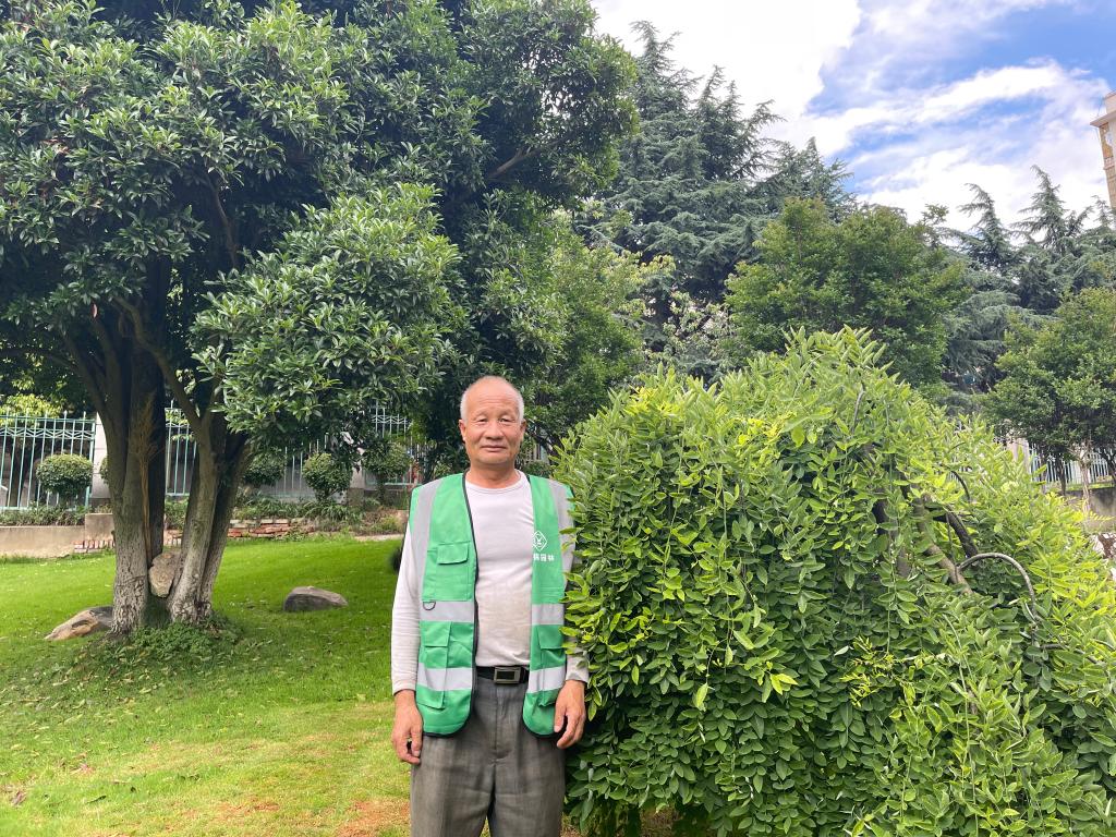 带头示范守初心。养护工作明轻暗重。大院养护组一共四人,赵师傅是组长,当每天的第一缕阳光照射时,他早已穿梭于大院的每一个角落,查看草坪是否缺水、树木是否有虫害,不论风霜雨雪还是炎炎烈日,赵师傅都雷打不动的提前到岗。他说:要想带领大家养护好大院的花花草草,自己首先要做好。56岁的他,在队组里是主力,每年的修枝工作他都是担起最重、最危险的部分。对操作不规范、不用心的职工,他会进行讲解示范,要怎样打药、修剪、机械修理等,确保职工心里懂,手头熟,少做无用功。比如,龙爪槐的修剪,要正确判断徒长枝、病虫枝、干枝死枝进行修剪;由于雪松的种植年限较长,相继出现了树干倾斜的情况,他想出采取拉力平衡的方式,将倾斜雪松进行拉稳固定,有效消除了树木翻根倾倒的安全隐患。