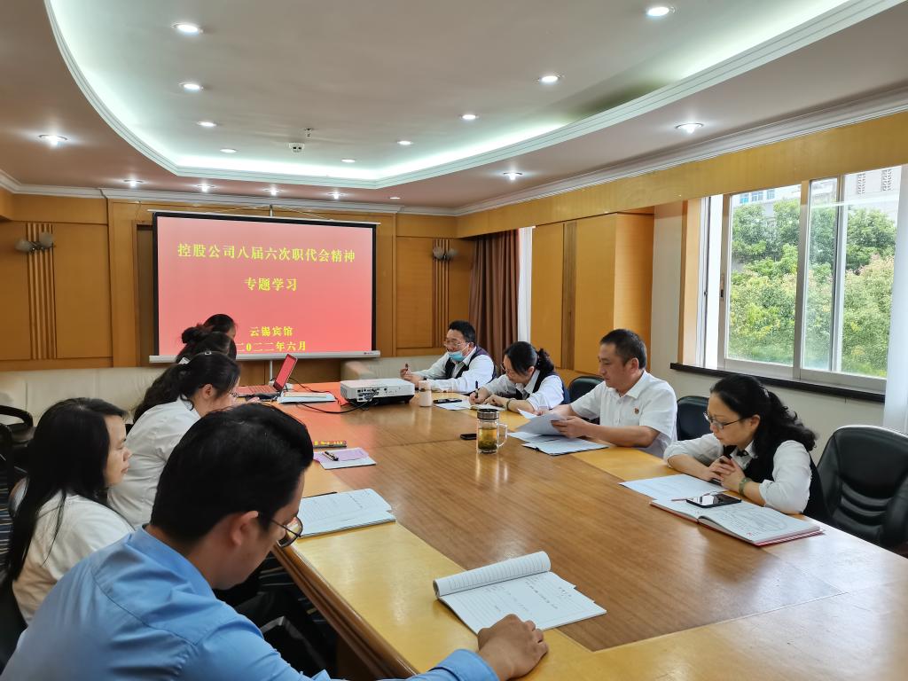 6月22日上午,云锡宾馆组织全体党员及各部门负责人对控股公司八届六次职代会精神进行了专题学习,深刻学习领会控股公司职代会精神。