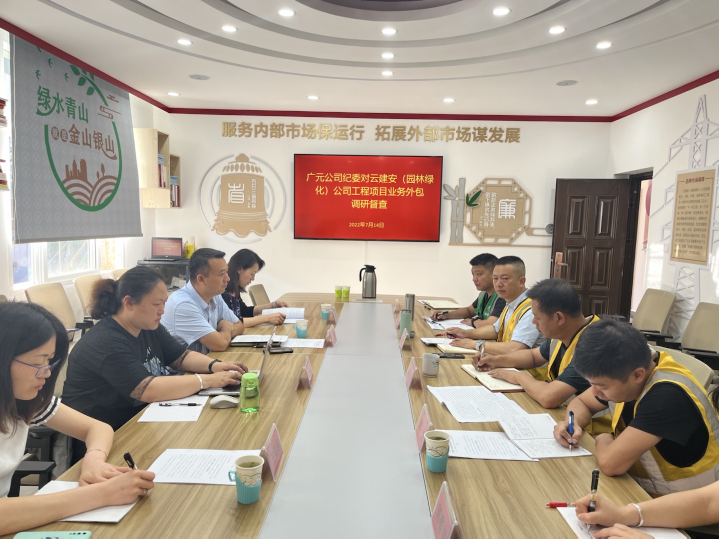 7月14日上午,广元公司纪委书记张雷率队到云建安(园林绿化)公司开展工程项目业务外包、合同管理、农民工工资支付等事项调研督查。