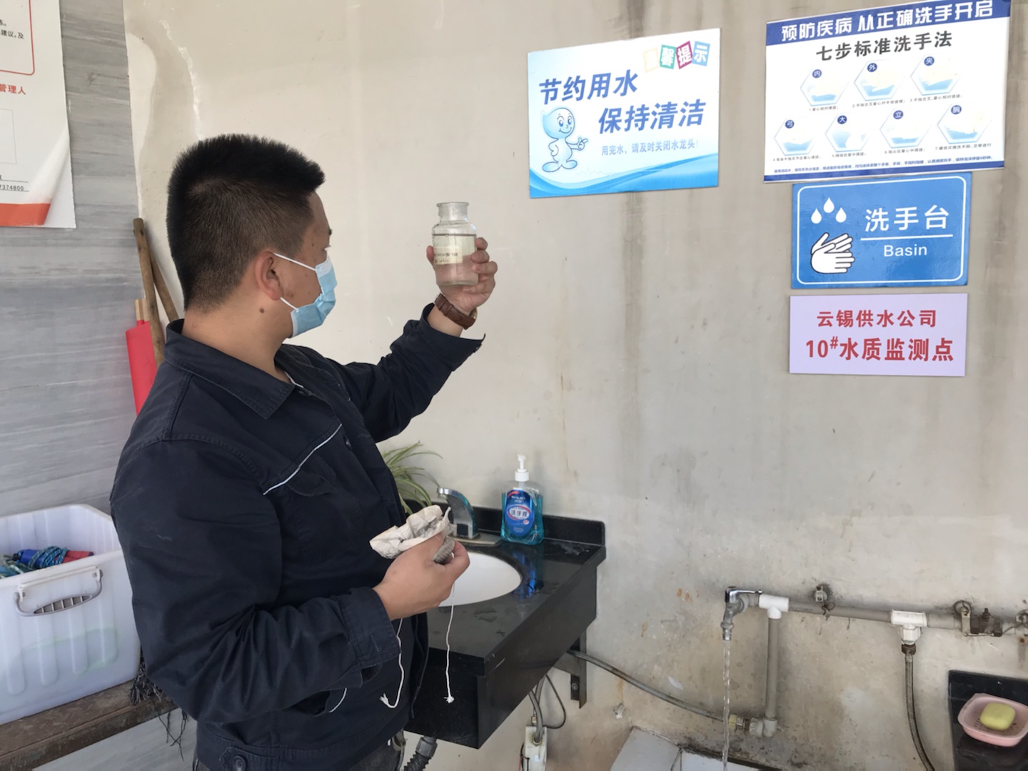 恪尽职守,为“放心水”编织最严密的安全网。为保障广大用户的用水安全,水质检验中心每月对各净化站出厂水、源水及相关水源30项指标开展全分析,对各小区、工厂、学校、医院等公共场所交叉开展微生物、二氧化氯、浑浊度、色度、嗅和味等指标监测;每周对乍甸龙潭、石榴坝龙潭、1360大沟重点水源点开展跟踪检测氟化物、砷等指标。为保障夏季高峰供水期和汛期水质安全,水质检验中心人员配合个旧市疾控中心开展了个旧市枯水期、丰水期生活饮用水的水质监测工作,主要对出厂水、末梢水中的微生物指标,以及嗅和味、硬度、浑浊度、PH等常规项目及毒理指标进行全分析检验,通过为期近一个月的紧密检验工作,云锡供水公司所采样抽检的20余个用水点水样的各项指标结果均符合GB5749《生活饮用水卫生标准》。