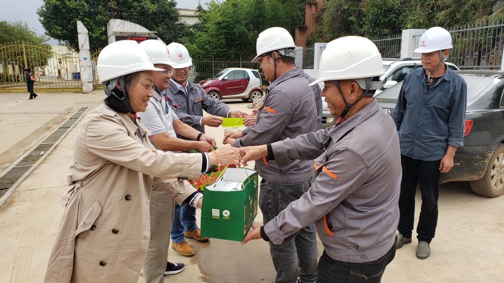 杨秀峰、陈娥慰问云建安(园林绿化)公司项目部一线职工(张磊/摄)