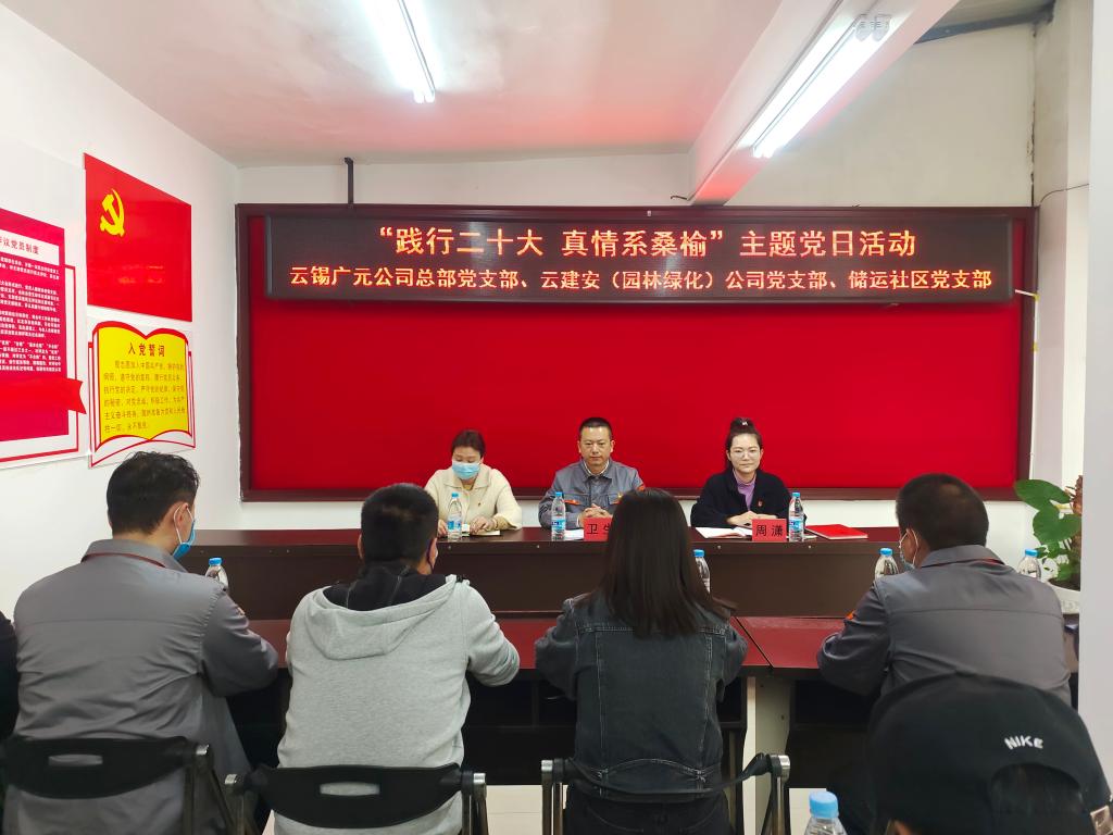 11月17日,广元总部党支部、云建安(园林绿化)公司党支部、云锡储运社区党支部联合开展“践行二十大真情系桑榆”主题党日活动,用实际行动传递温暖关怀和文明新风。三个党支部30余名党员参加活动。