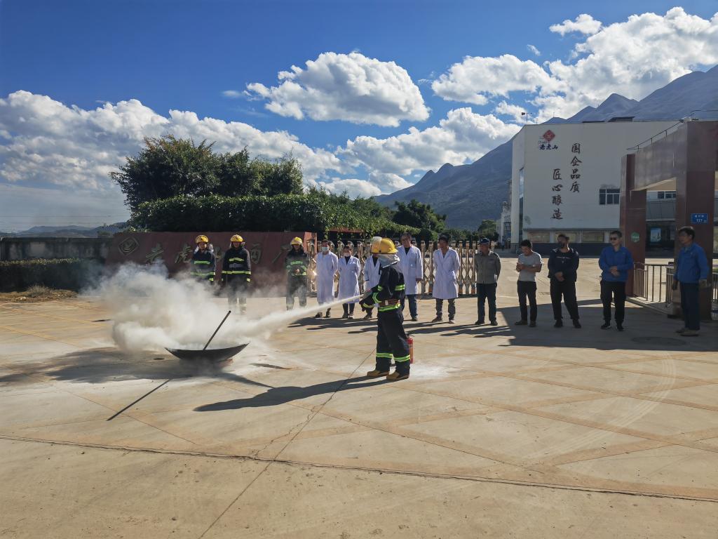 老虎山酒业公司在生产中心(大屯)举行消防灭火应急演练,酒业公司领导班子成员及相关部门人员参加消防演练。