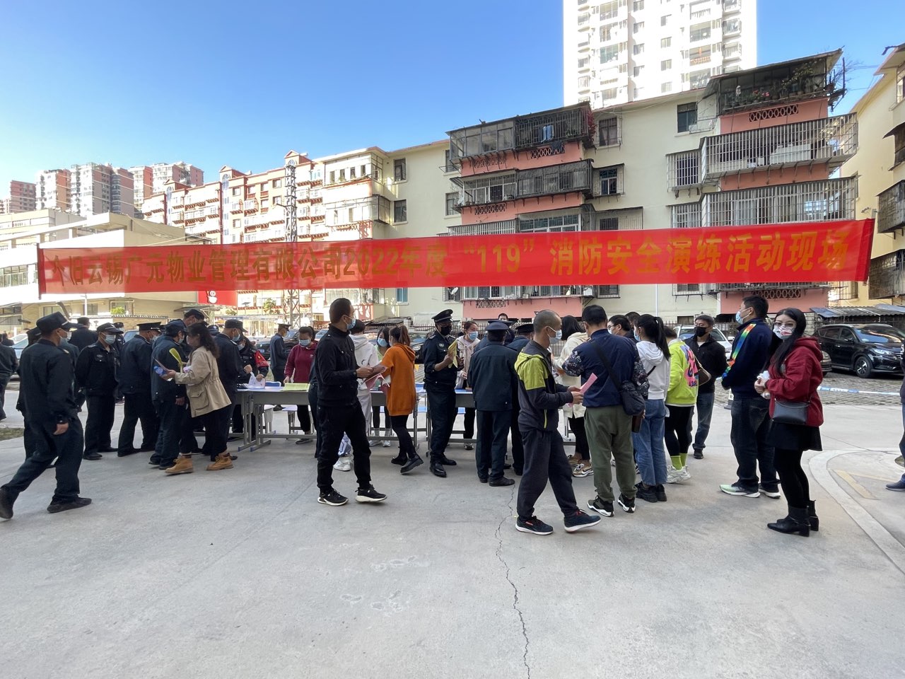 云房(广元)物管公司联合永胜社区,昆仑、蓝盾、金盾保安公司,电梯公司及相关人员在南城家园开展消防演练及暨消防安全知识培训活动。活动中主要针对消防设施、器材的功能及使用进行了理论讲解培训,并进一步开展灭火器、消防栓的实操训练,参训人员真实体验了消防器材的使用和操作程序。