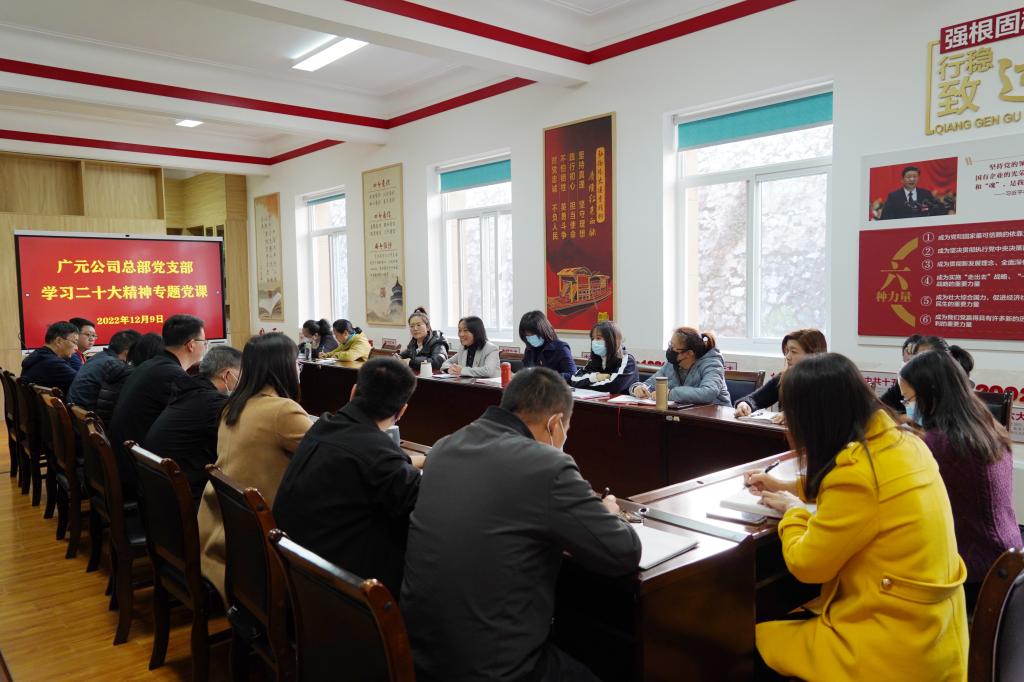 广元公司党委副书记、工会主席陈娥为总部党支部党员职工讲授了一堂专题党课,围绕大会主题、过去五年的工作和新时代十年的伟大变革等方面进行深入浅出的讲授,并就如何学习贯彻党的二十大精神,结合广元公司改革实际,提出了具体工作要求。