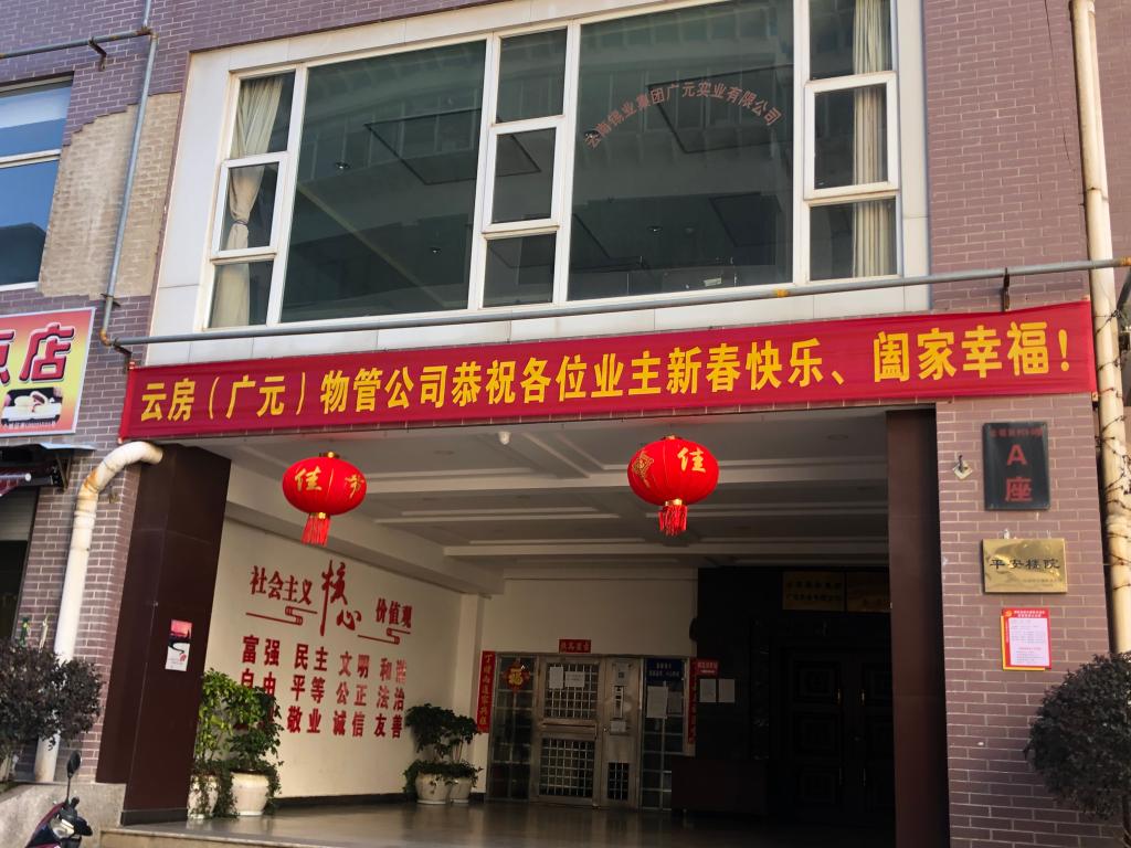 在新春佳节来临之际,为切实让辖区内的业主(住户)感受到新春佳节的温馨和“浓”厚的节日气氛。按照《个旧市人民政府办公室关于2023年春节城市氛围营造工作推进会议》要求。近日,云房(广元)物管公司及时召开节日氛围营造专题工作会,积极谋划并组织工作人员,在小区大门悬挂新春祝福横幅、大红灯笼,并对小区树木绿植悬挂灯笼、彩旗等饰品进行装饰装点,使小区整体呈现出欢乐喜庆的浓厚春节氛围,得到了广大业主的一致好评!