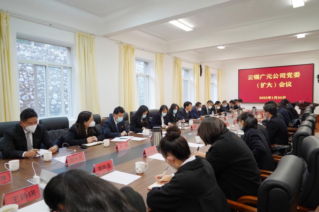 王金强调:2023年是全面贯彻落实党的二十大精神的开局之年,各级党组织要深入贯彻党的二十大精神和控股公司“三会”精神,紧扣控股公司“1334”发展思路、聚焦“3815”战略发展目标,围绕“强党建、深改革、谋发展”主线和“夯基础、强管理、提质效”重点,充分发挥基层党组织战斗堡垒作用和党员先锋模范作用,创新工作方法,强化基础保障,提升基层党建影响力,着力推进深化改革各项工作,以高质量党建引领改革发展,为云锡创建世界一流示范企业贡献广元力量。