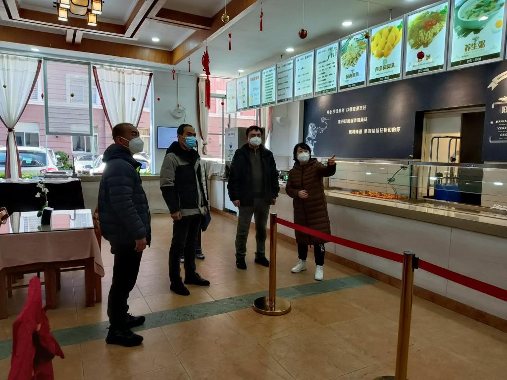 检查组一行深入实地查看了云锡宾馆外包的丹味餐厅食品安全及客房卫生消毒情况,重点对经营场所内的消防设施、经营证照、安全管理规章制度,应急预案、安全培训等内容进行检查,并对相关工作给予肯定。