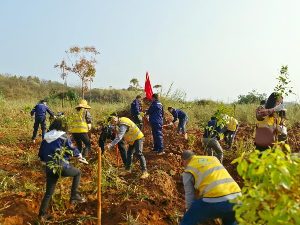 植树活动现场气氛热烈。两个党支部的党员及团员青年两人或三人一组,分工协作、配合有序,有的运送苗木,有的扶苗培土,有的浇水围堰。大家边植树,边相互认识、边交流工作心得。经过大家的辛勤劳动,200余株香樟树苗整齐伫立,放眼望去,一棵棵整齐排列的树苗在春风中摇曳,呈现出勃勃生机,在和煦的春风中舒展枝桠,为初春增添了一抹新绿,为秋天的收获埋下“希望之种”。