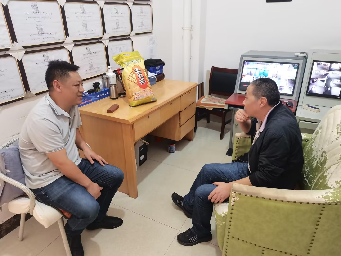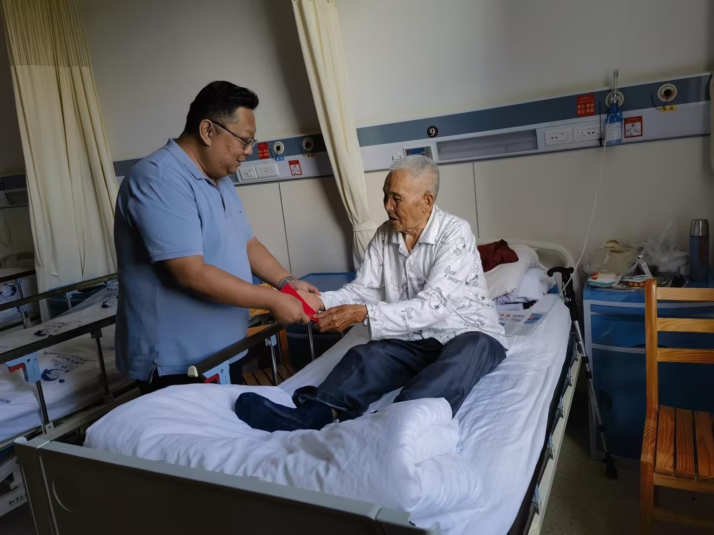 公司党委副书记、副董事长、总经理余国睿走访慰问机电工程业务部困难职工安锐(孙载通/摄)