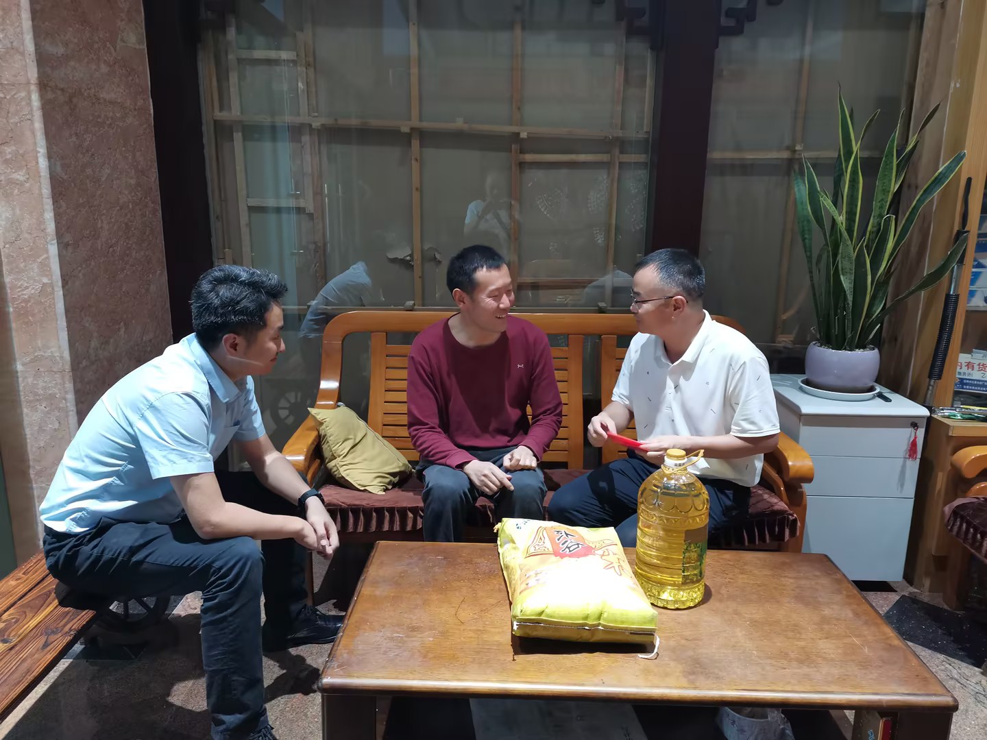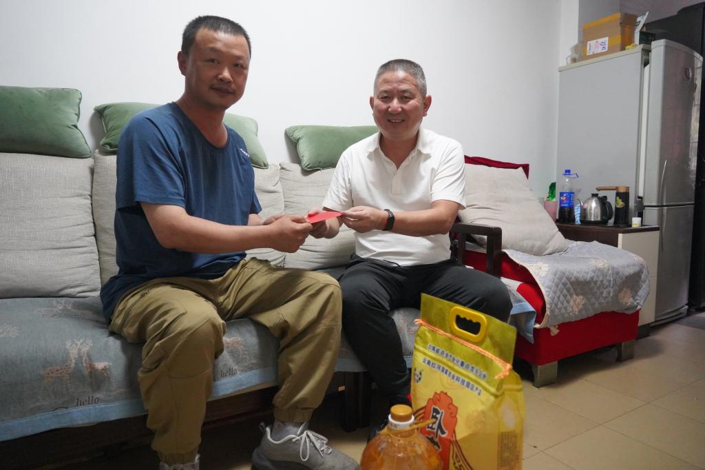 公司党委委员、副董事长杨秀峰走访慰问困难职工魏红钢(徐纯/摄)