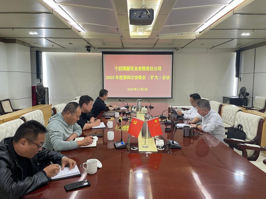 会议传达学习全省生态环境保护大会会议精神、近期云南省安全生产有关事故文件精神及相关案例、控股公司四季度安委会(扩大)会议精神,并通报锡都实业公司三季度安全环保责任状考核情况。