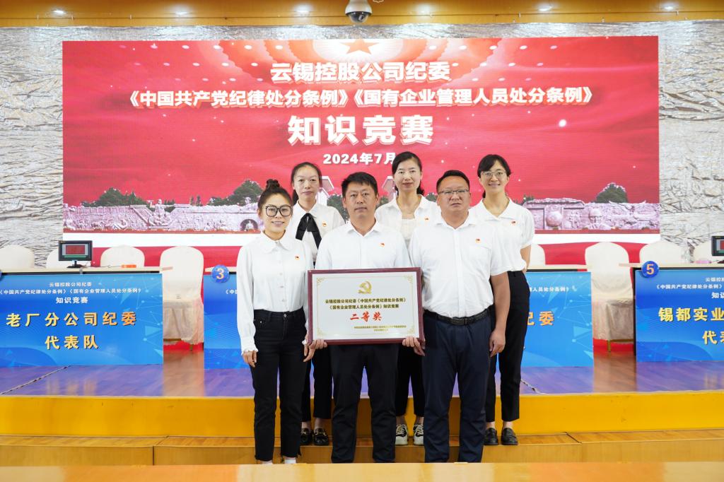 “我们党的最大政治优势是密切联系群众;《中国共产党纪律处分条例》适用于党的各级组织和全体党员……”。7月1日至2日,控股公司纪委举办的学习《中国共产党纪律处分条例》《国有企业管理人员处分条例》知识竞赛在云锡宾馆三楼报告厅拉开帷幕,锡都实业纪委代表队在初赛12支代表队中脱颖而出,进入决赛,最终荣获决赛二等奖。
