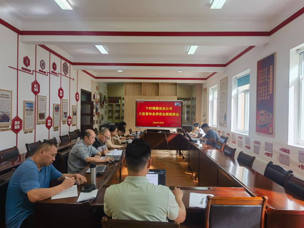 为进一步推进“大监督”工作落地落实,推进监督的统筹协同,放大监督叠加效应。7月5日,锡都实业公司在个旧云锡办公大楼105会议室和昆明902会议室召开2024年二季度大监督体系季度会商联席会,会议由公司党委委员、纪委书记王树旗主持。