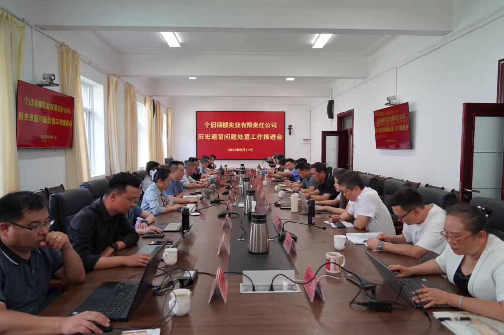 8月14日下午,锡都实业公司在个旧127会议室召开历史遗留问题处置工作推进会。会议由公司副总经理王议主持召开,公司党委副书记、副董事长、总经理余国睿提工作要求。