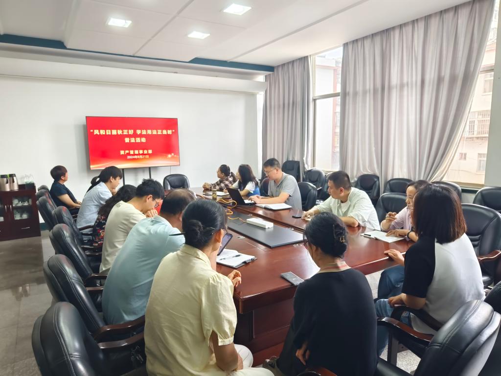 资产管理事业部主要负责云锡控股公司及所属各单位非生产性资产的管理、租赁和盘活,分别为土地、林地、商铺(含经营性房产)、公房(含公共租赁住房、职工宿舍)、其他建构筑物(含场地、厂房等),为引导广大干部职工尊法、学法、守法、用法,不断增强法律意识、提升法治素养,资产管理事业部结合实际,采取与员工面对面座谈交流的方式组织重点岗位人员深入学习宣传习近平法治思想,针对日常工作中可能会遇到的廉洁风险点进行认真讲解,教育引导党员干部职工学会看三张图:即看懂业务流程图,知道该干什么,做到心中有责;看懂风险管控图,知道重点是什么,做到心中有数;看懂廉洁防控图,知道底线是什么,做到心中有畏,实现“看图用权、照单履职”,同时还采用线上学习的方式分享《中华人民共和国企业国有资产法》《中华人民共和国公司法》等法律法规。
