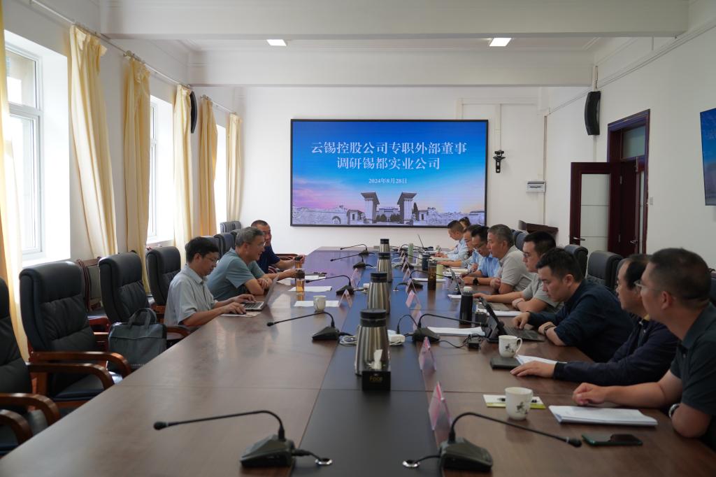 8月28日,云锡外部专职董事周建国、杨林到锡都实业公司调研。公司党委副书记、副董事长、总经理余国睿以及其他领导班子成员就公司机构设置、人员配置、当期生产经营、债权清收、重点工作推进情况以及存在的问题等方面进行汇报。