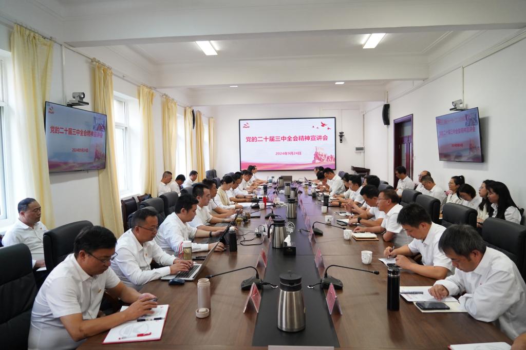 9月24日下午,云锡控股公司党委宣讲团成员,党委委员、副总经理吴君到锡都实业公司宣讲党的二十届三中全会精神宣讲,强调要深入学习贯彻习近平新时代中国特色社会主义思想,全面学习、把握、贯彻、落实好党的二十届三中全会精神,要进一步全面深化改革,为谱写好中国式现代化云南篇章、云锡篇章和锡实篇章而不懈努力!