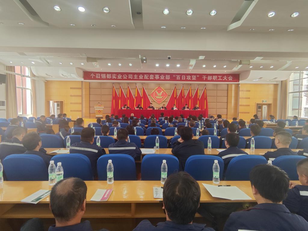 9月26日,主业配套事业部召开“百日攻坚”干部职工大会,传达锡都实业公司相关会议精神,并动员全体干部职工迅速进入战斗状态,全力以赴“决战四季度”,冲刺目标任务。