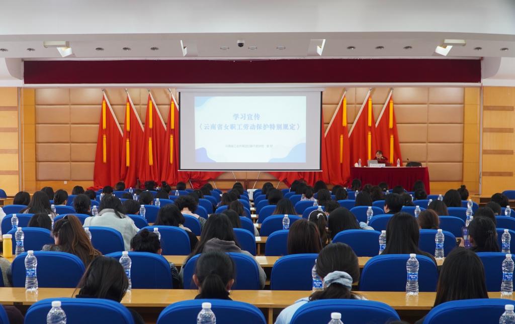 为深入贯彻习近平法治思想,推动《云南省女职工劳动保护特别规定》(以下简称《特别规定》)的普及与实施,切实维护和保障女职工的合法权益,营造尊法守法用法的良好氛围。4月2日,由控股公司工会女工委主办,锡都实业工会承办的“法治护航女职工,共筑劳动保护新篇章”专题讲座在云锡宾馆顺利举行。